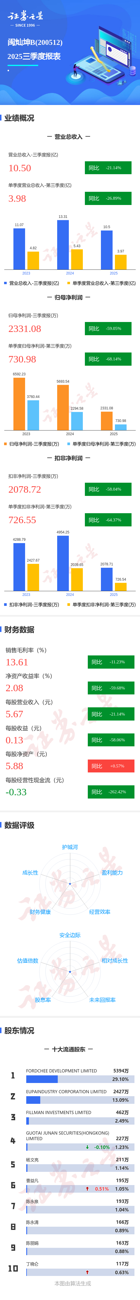 证券之星消息,闽灿坤B2025年三季报显示,公司主营收入10.5亿元,同比下降21.14%;归母净利润2331.08万元,同比下降59.06%;扣非净利润2078.72万元,同比下降58.04%;其中2025年第三季度,公司单季度主营收入3.98亿元,同比下降26.9%;单季度归母净利润730.98万元,同比下降68.14%;单季度扣非净利润726.55万元,同比下降64.38%;负债率37.28%,投资收益2322.8万元,财务费用750.33万元,毛利率13.61%。