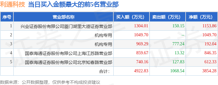 从龙虎榜公布的当日买卖数据来看,机构合计净买入1241.74万元。厦门湖里大道等知名游资榜上有名。(知名游资厦门湖里大道一般指兴业证券股份有限公司厦门湖里大道证券营业部席位,根据市场资料整理,仅供参考)