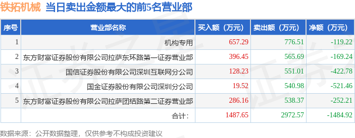 从龙虎榜公布的当日买卖数据来看,机构合计净卖出119.22万元。