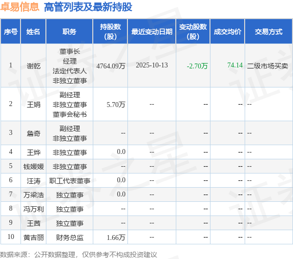 卓易信息的高管列表及最新持股情况如下: