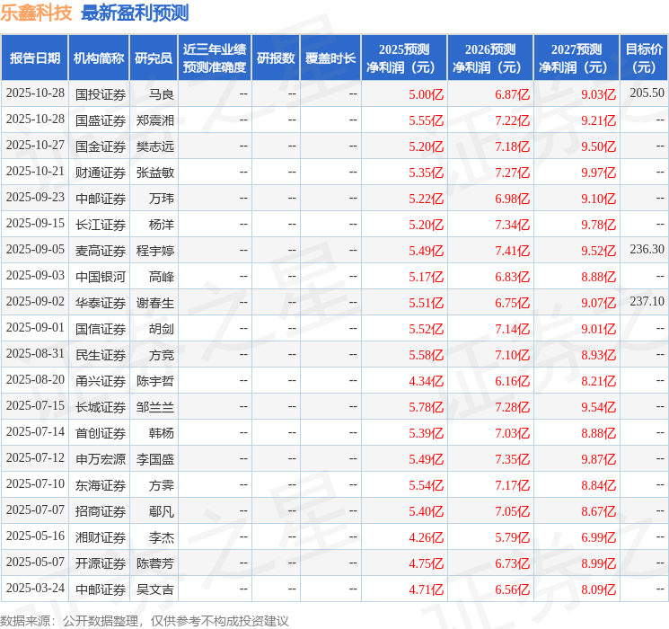 最新盈利预测明细如下:
