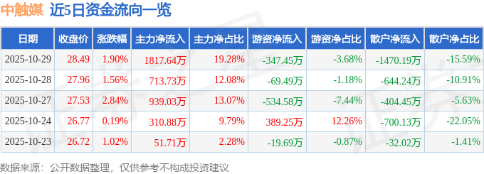 10月29日的资金流向数据方面,主力资金净流入1817.64万元,占总成交额19.28%,游资资金净流出347.45万元,占总成交额3.68%,散户资金净流出1470.19万元,占总成交额15.59%。