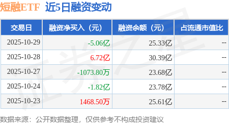 证券之星消息,10月29日,短融ETF(511360)融资买入27.5亿元,融资偿还32.56亿元,融资净卖出5.06亿元,融资余额25.33亿元。
