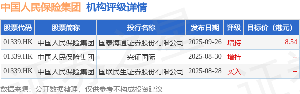 截至2025年10月30日收盘,中国人民保险集团(01339.HK)报收于7.41港元,下跌0.94%,成交量5714.67万股,成交额4.26亿港元。投行对该股的评级以增持为主,近90天内共有2家投行给出增持评级,近90天的目标均价为8.54港元。国泰海通证券股份有限公司最新一份研报给予中国人民保险集团增持评级,目标价8.54港元。