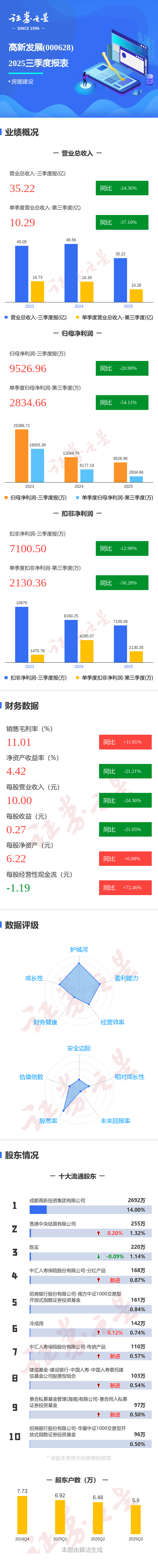 证券之星消息,高新发展2025年三季报显示,前三季度公司主营收入35.22亿元,同比下降24.36%;归母净利润9526.96万元,同比下降20.9%;扣非净利润7100.5万元,同比下降12.99%;其中2025年第三季度,公司单季度主营收入10.29亿元,同比下降37.11%;单季度归母净利润2834.66万元,同比下降54.11%;单季度扣非净利润2130.36万元,同比下降50.28%;负债率82.33%,投资收益2357.63万元,财务费用4733.34万元,毛利率11.01%。