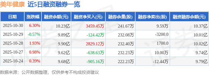 证券之星消息,截至2025年10月30日收盘,美年健康(002044)报收于5.57元,上涨6.3%,换手率9.48%,成交量367.12万手,成交额20.59亿元。