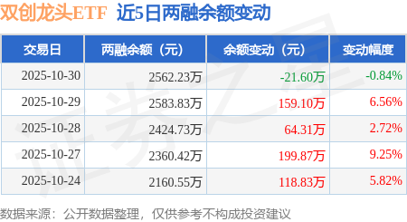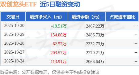 证券之星消息,10月30日,双创龙头ETF(588330)融资买入692.32万元,融资偿还711.83万元,融资净卖出19.51万元,融资余额2467.22万元,近20个交易日中有13个交易日出现融资净买入。