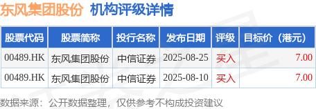 投行对该股的评级以买入为主,近90天内共有2家投行给出买入评级,近90天的目标均价为7港元。中信证券最新一份研报给予东风集团股份买入评级,目标价7港元。