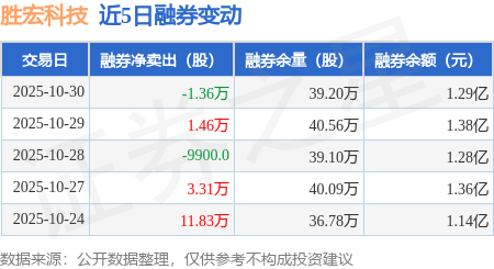 证券之星消息,10月30日,胜宏科技(300476)融资买入35.54亿元,融资偿还41.06亿元,融资净卖出5.52亿元,融资余额188.11亿元,近20个交易日中有12个交易日出现融资净买入。
