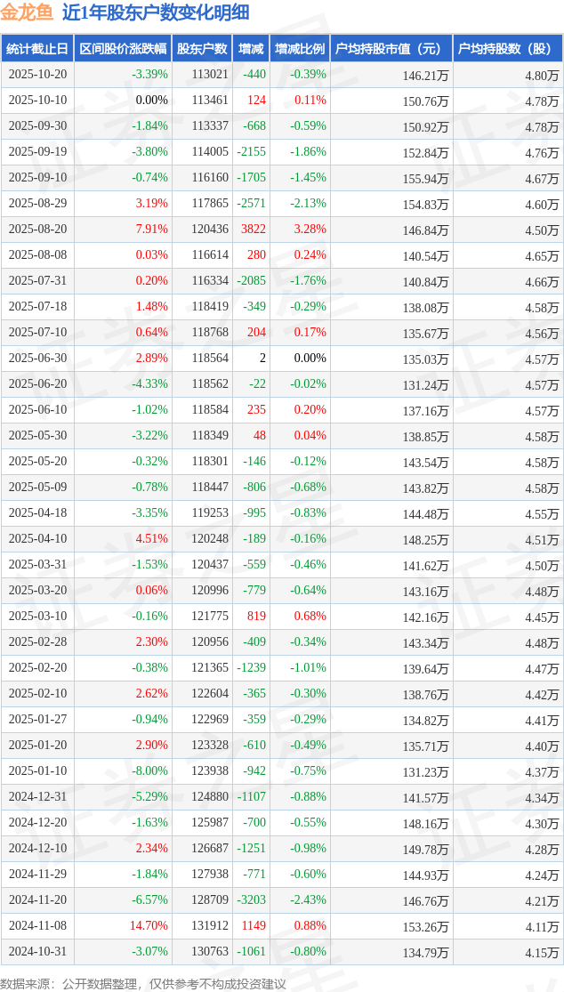从股价来看,2025年10月10日至2025年10月20日,金龙鱼区间跌幅为3.39%,在此期间股东户数减少440.0户,减幅为0.39%。