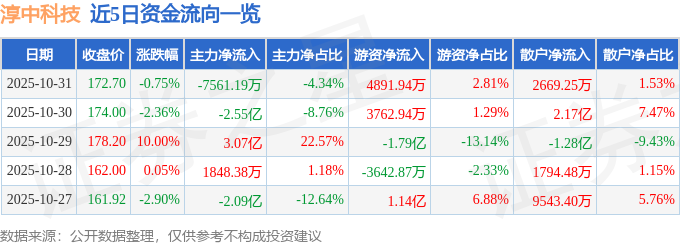 10月31日的资金流向数据方面,主力资金净流出7561.19万元,占总成交额4.34%,游资资金净流入4891.94万元,占总成交额2.81%,散户资金净流入2669.25万元,占总成交额1.53%。