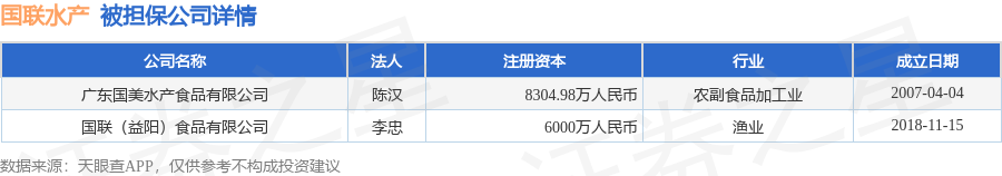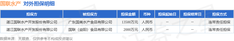 国联水产10月29日披露2笔对外担保,被担保公司2家。对外担保明细如下表: