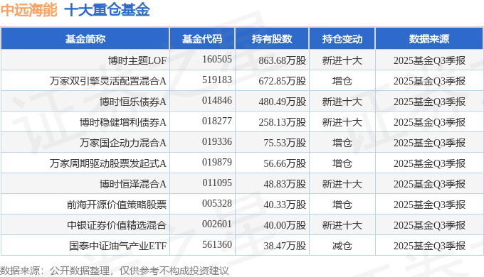 持有中远海能最多的基金为博时主题LOF,目前规模为52.65亿元,最新净值1.188(10月31日),较上一交易日下跌0.92%,近一年上涨17.32%。该基金现任基金经理为金晟哲。