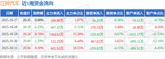 沪深股通持股方面,截止2025年10月31日收盘,江铃汽车深股通持股数为1864.65万股,占流通股比为360.0%。
