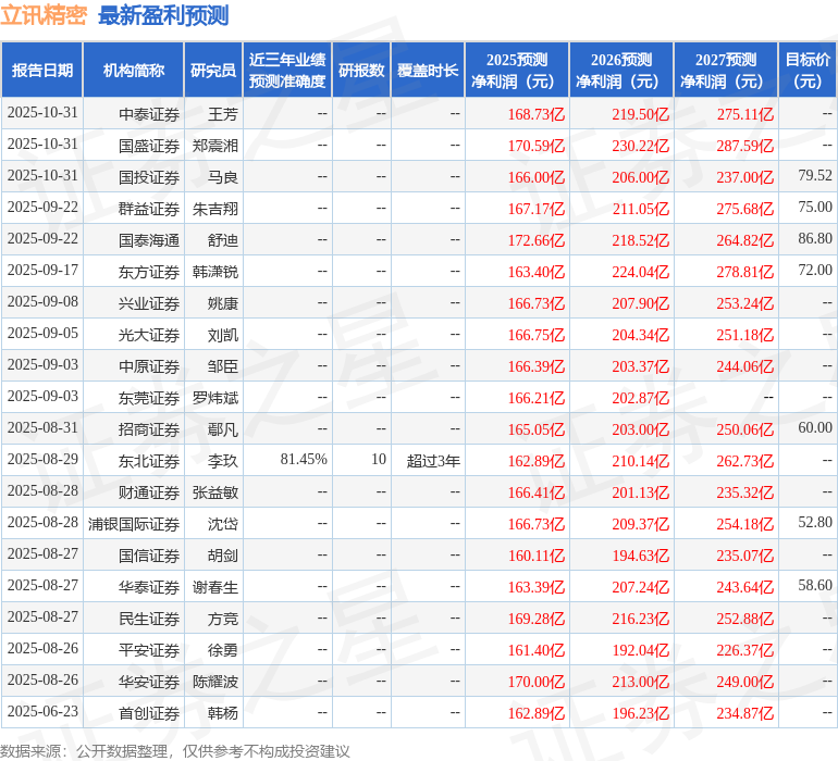 证券之星数据中心根据近三年发布的研报数据计算,东北证券李玖研究员团队对该股研究较为深入,近三年预测准确度均值高达81.45%,其预测2025年度归属净利润为盈利162.89亿,根据现价换算的预测PE为28。