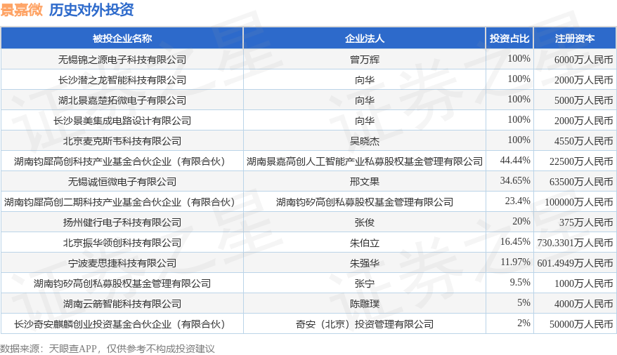 通过天眼查大数据分析,长沙景嘉微电子股份有限公司共对外投资了13家企业,参与招投标项目223次;财产线索方面有商标信息113条,专利信息250条,著作权信息76条;此外企业还拥有行政许可6个。据2024年报数据,景嘉微长期股权投资3.0亿元,同比增14.07%。