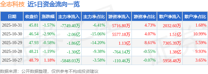 10月31日的资金流向数据方面,主力资金净流出7749.4万元,占总成交额6.41%,游资资金净流入5716.8万元,占总成交额4.73%,散户资金净流入2032.6万元,占总成交额1.68%。