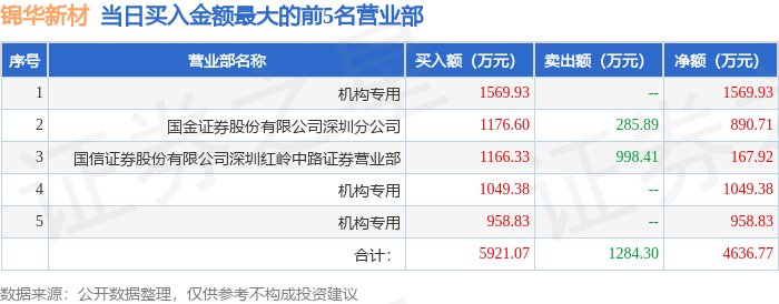 证券小知识:龙虎榜是交易所披露的竞价交易公开信息,现身龙虎榜的个股都是当日最为活跃的个股,是投资者日常重点关注的数据。交易所公布当日买入金额和卖出金额前五名的席位,其中一些席位代表特殊意义,如机构专用席位是指基金专用席位、券商自营专用席位、社保专用席位、券商理财专用席位、保险机构专用席位、保险机构租用席位、QFII专用席位等机构投资者买卖证券的专用通道和席位。深股通专用、沪股通专用为北向资金的交易席位。从龙虎榜数据可以发现和研究机构、游资和散户的资金动向。一些营业部席位经常上榜,市场知名度较高,投资者整理代表散户、游资、量化等不同资金的营业部席位。
