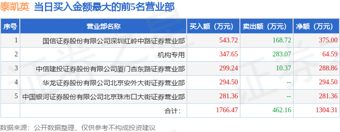 从龙虎榜公布的当日买卖数据来看,机构合计净买入64.59万元。