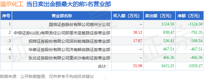 证券之星消息,沪深交易所2025年11月3日公布的交易公开信息显示,迪尔化工(920304)因当日换手率达到20%的前5只股票,当日收盘价涨幅达到20%的前5只股票登上龙虎榜。此次是近5个交易日内第1次上榜。