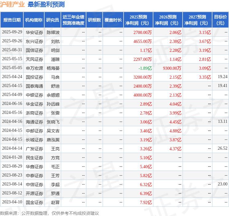 以下是详细的盈利预测信息: