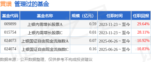黄璜先生:硕士,中国,历任上银基金高级研究员、基金经理助理等职务。现任上银基金基金经理。现任上银内需增长股票型证券投资基金基金经理。