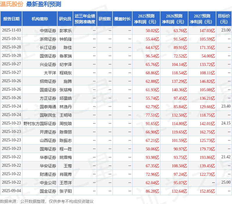 以下是详细的盈利预测信息: