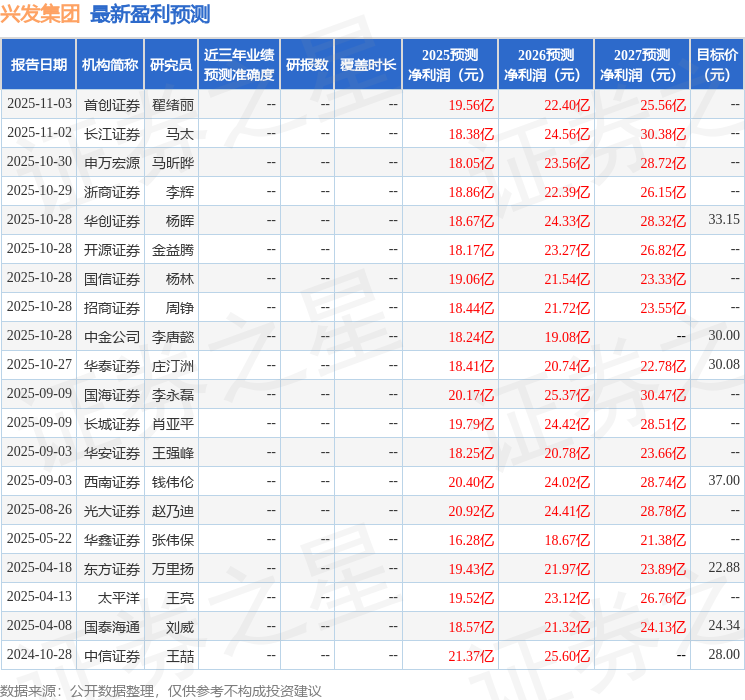 最新盈利预测明细如下:
