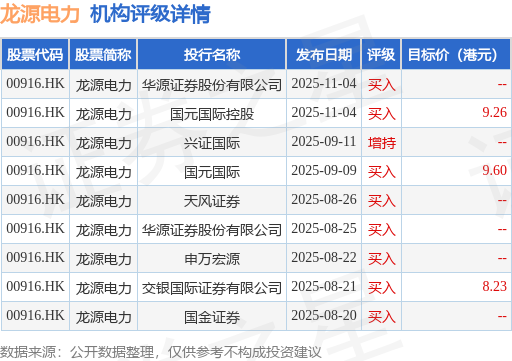 投行对该股的评级以买入为主,近90天内共有8家投行给出买入评级,近90天的目标均价为9.03港元。华源证券股份有限公司最新一份研报给予龙源电力买入评级。