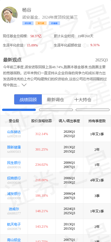 可在证星研究院详细查看杨谷战绩和分析师对基金持仓的增减仓公司的业绩预测。(更多特色估值数据尽在证星研究院)