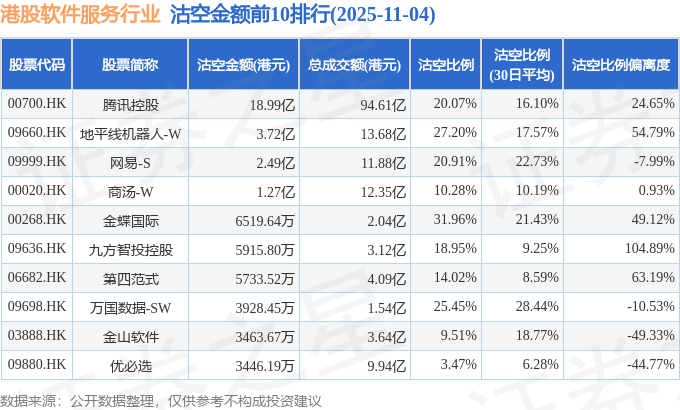 从沽空金额来看,腾讯控股、地平线机器人-W、网易-S沽空金额位居行业前三,分别为18.99亿港元、3.72亿港元、2.49亿港元。