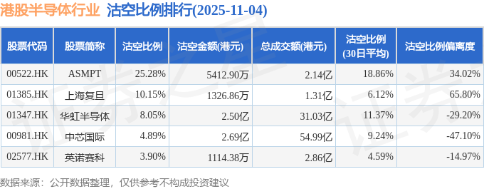 从沽空比例来看,ASMPT、上海复旦、华虹半导体沽空比例位居行业前三,分别为25.28%、10.15%、8.05%。