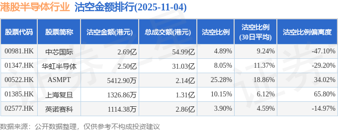 从沽空金额来看,中芯国际、华虹半导体、ASMPT沽空金额位居行业前三,分别为2.69亿港元、2.5亿港元、5412.9万港元。