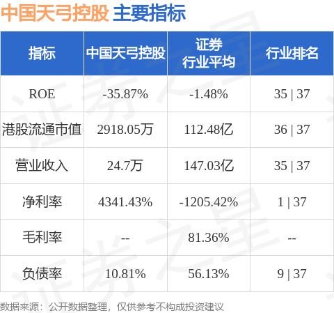 中国天弓控股港股市值2918.05万港元,在证券行业中排名第36。主要指标见下表: