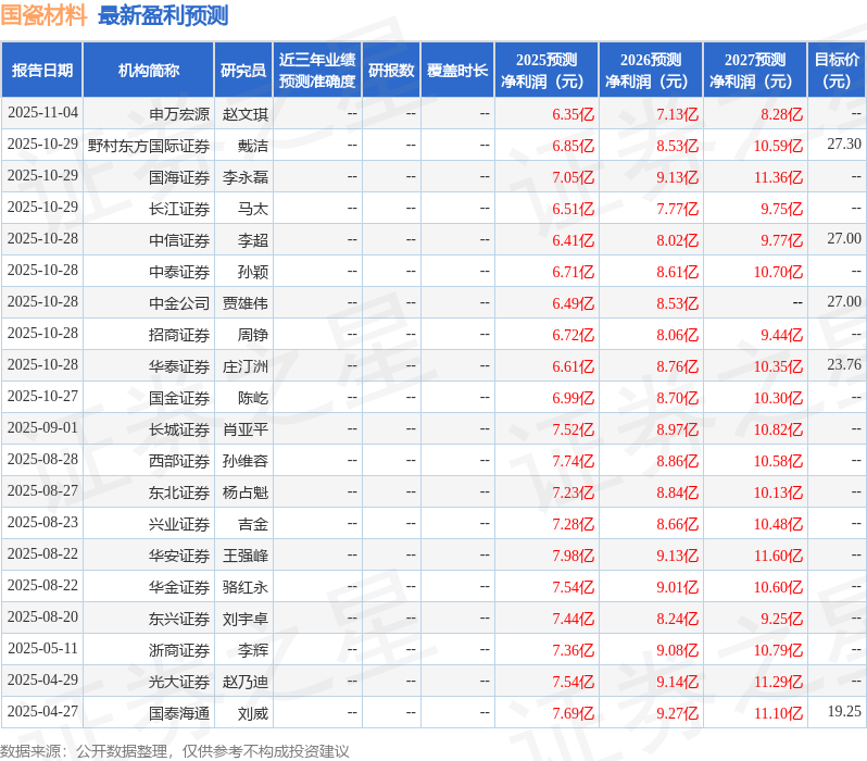 华安证券股份有限公司王强峰,刘天其近期对国瓷材料进行研究并发布了研究报告《2025Q3业绩微增,公司前瞻布局打开成长空间》,给予国瓷材料买入评级。