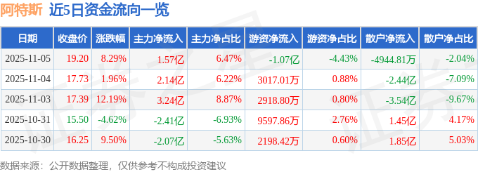 11月5日的资金流向数据方面,主力资金净流入1.57亿元,占总成交额6.47%,游资资金净流出1.07亿元,占总成交额4.43%,散户资金净流出4944.81万元,占总成交额2.04%。