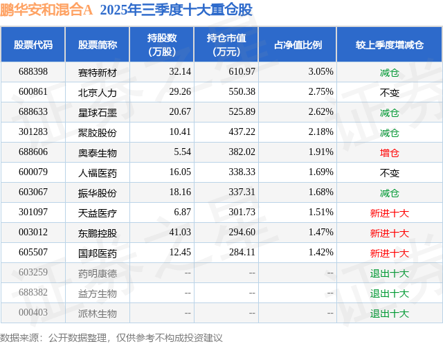 根据2025基金Q3季报公募基金重仓股数据,重仓该股的公募基金共4家,其中持有数量最多的公募基金为鹏华基金的鹏华安和混合A。鹏华安和混合A目前规模为1.9亿元,最新净值1.4051(11月4日),较上一交易日下跌0.2%,近一年上涨14.05%。该公募基金现任基金经理为汤志彦。汤志彦在任的基金产品包括:鹏华弘嘉混合A,管理时间为2017年12月14日至今,期间收益率为179.67%;鹏华尊惠定期开放混合A,管理时间为2018年10月27日至今,期间收益率为108.89%;鹏华安庆混合A,管理时间为2020年6月23日至今,期间收益率为42.36%。