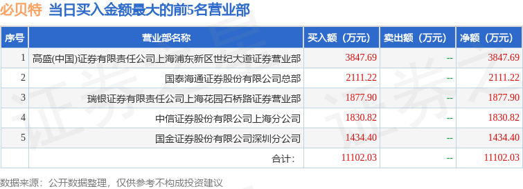 证券之星消息,沪深交易所2025年11月5日公布的交易公开信息显示,必贝特(688759)因有价格涨跌幅限制的日换手率达到30%的前五只证券登上龙虎榜。此次是近5个交易日内第1次上榜。