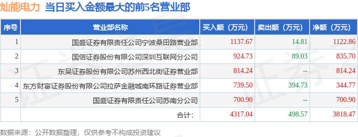 截至2025年11月5日收盘,灿能电力(920299)报收于24.9元,上涨29.96%,涨停,换手率41.1%,成交量18.11万手,成交额4.02亿元。