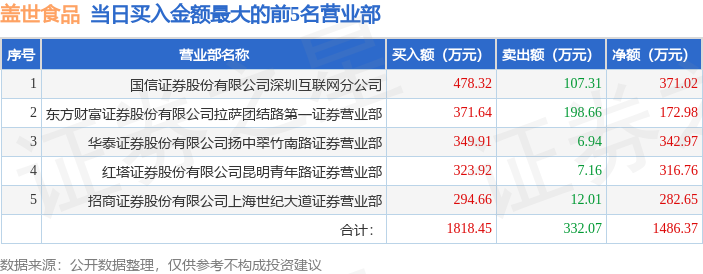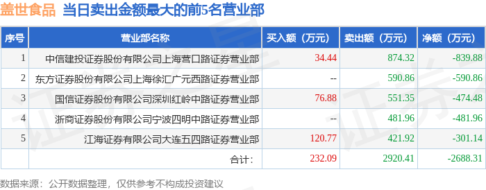 证券之星消息,沪深交易所2025年11月5日公布的交易公开信息显示,盖世食品(920826)因当日换手率达到20%的前5只股票登上龙虎榜。此次是近5个交易日内第1次上榜。