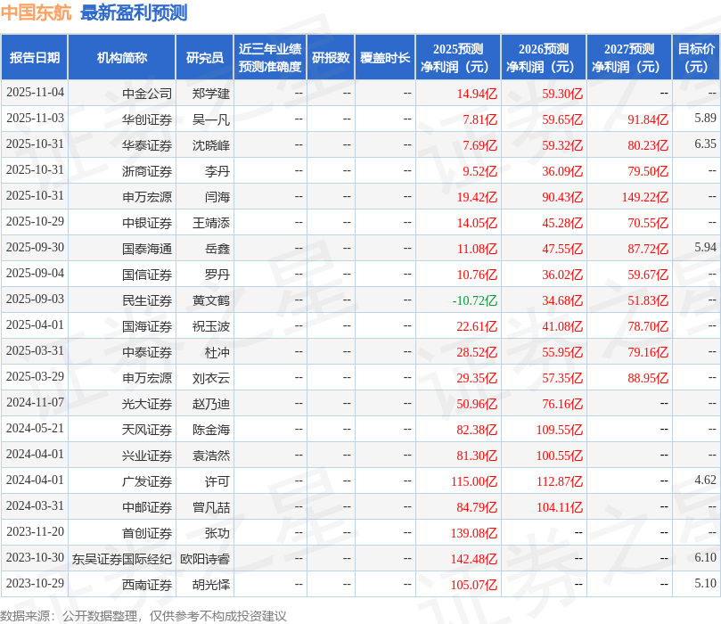 民生证券股份有限公司张骁瀚,黄文鹤,陈佳裕近期对中国东航进行研究并发布了研究报告《2025年三季报点评:25Q3扣非盈利同比大幅增长,改革效益持续体现》,给予中国东航买入评级。