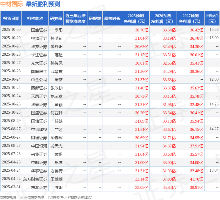 最新盈利预测明细如下: