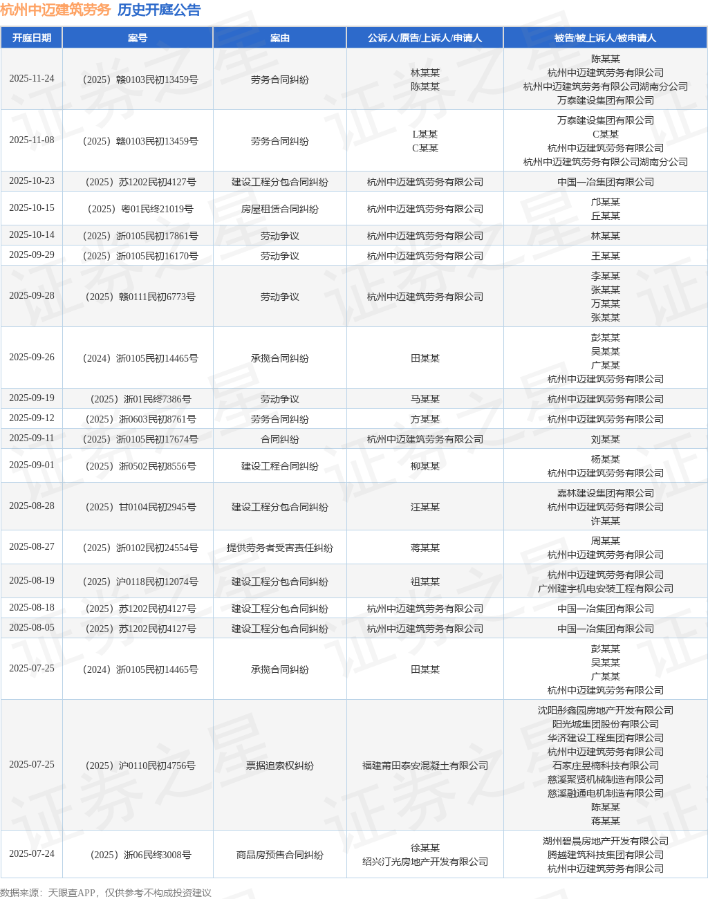 证券之星消息,根据天眼查APP显示,近日公布了一则杭州中迈建筑劳务有限公司作为被告/被上诉人的开庭公告,详细内容如下:
