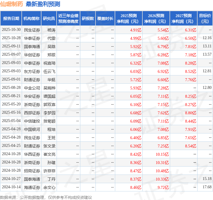 考虑到公司原料药业务仍有所承压,部分制剂产品受集采影响收入有所下滑,我们下调对公司2025-2027年盈利预测。预计公司2025-2027年实现营业收入39.36/45.27/51.56亿元,同比-1.6%/+15.0%/+13.9%(此前为41.57/47.80/54.48亿元);实现归母净利润5.11/6.80/7.88亿元,同比+28.5%/+33.1%/15.9%(此前为6.05/7.11/8.25亿元)。维持“买入”评级。