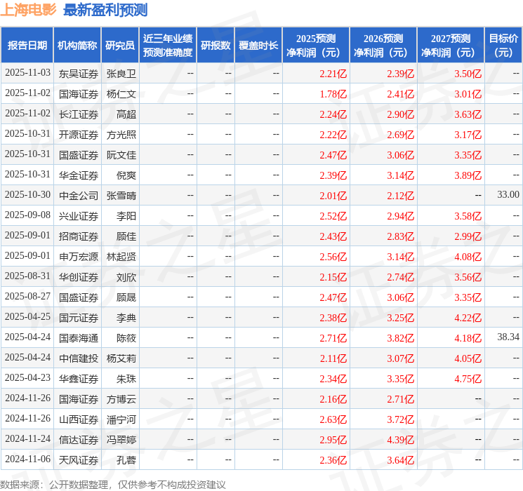 华龙证券股份有限公司孙伯文,王佳琪近期对上海电影进行研究并发布了研究报告《2025年三季报业绩点评报告:核心业务驱动业绩释放,关注IP布局》,给予上海电影增持评级。