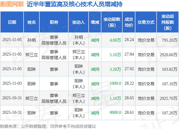殷图网联近半年内的董监高及核心技术人员增减持详情如下: