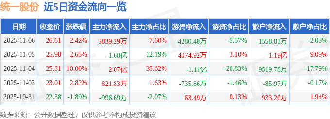 11月6日的资金流向数据方面,主力资金净流入5839.29万元,占总成交额7.6%,游资资金净流出4280.48万元,占总成交额5.57%,散户资金净流出1558.81万元,占总成交额2.03%。
