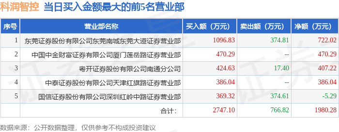 证券之星消息,沪深交易所2025年11月6日公布的交易公开信息显示,科润智控(920062)因当日换手率达到20%的前5只股票登上龙虎榜。此次是近5个交易日内第2次上榜。