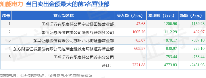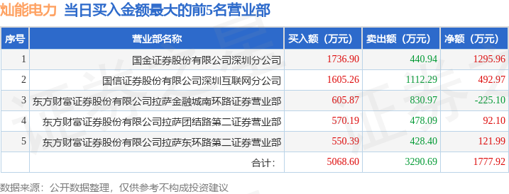 证券之星消息,沪深交易所2025年11月6日公布的交易公开信息显示,灿能电力(920299)因当日换手率达到20%的前5只股票登上龙虎榜。此次是近5个交易日内第2次上榜。
