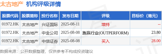 截至2025年11月6日收盘,太古地产(01972.HK)报收于21.66港元,下跌0.64%,成交量265.65万股,成交额5762.8万港元。投行对该股的评级以跑赢行业(OUTPERFORM)为主,近90天内共有1家投行给出跑赢行业(OUTPERFORM)评级,近90天的目标均价为25.9港元。兴证国际最新一份研报给予太古地产增持评级。